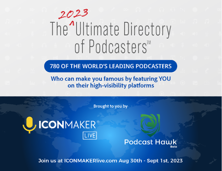 To purchase tickets to ICONMAKER Live click here. To claim your copy of The Ultimate Directory of Podcasters, click here.