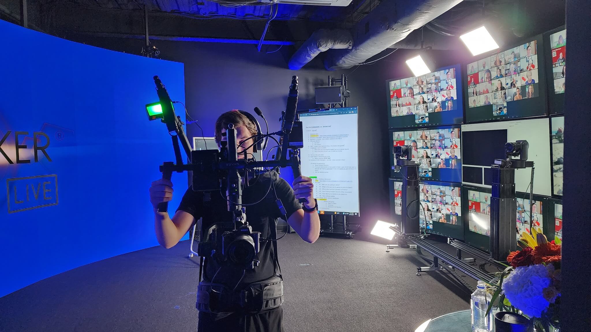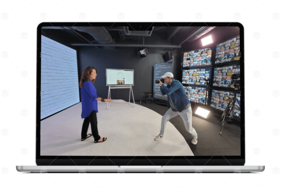 This spectacular virtual event studio and live in-person meeting space combines the best of Virtual Events with the best of live in-person.